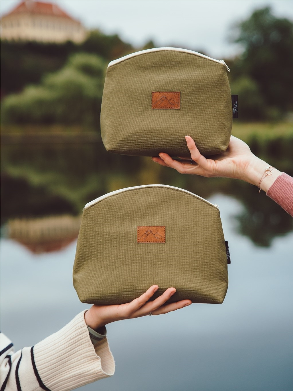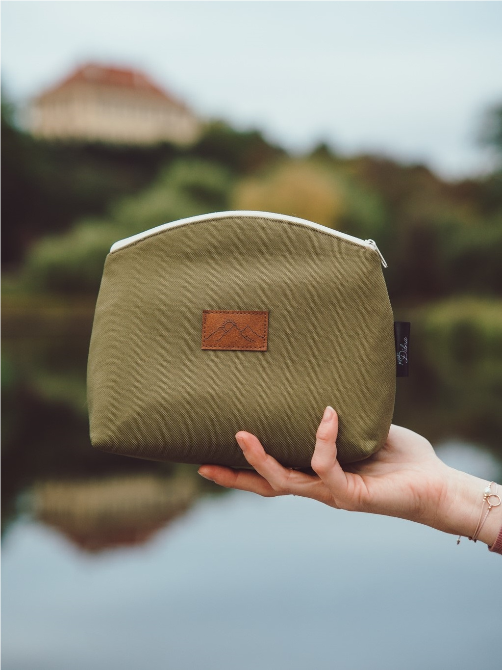 Barva kosmetické tašky přesně odpovídá barvě khaki Mama tašky. Na fotkách mohou být odstíny lehce odlišné z důvodu světla při focení.