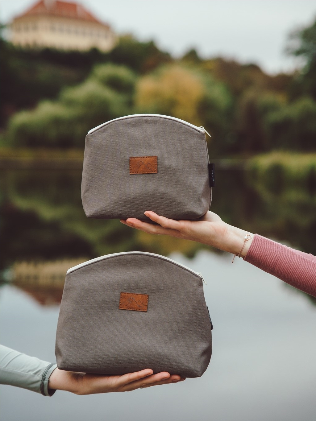 Barva kosmetické tašky přesně odpovídá barvě šedé Mama tašky. Na fotkách mohou být odstíny lehce odlišné z důvodu světla při focení.