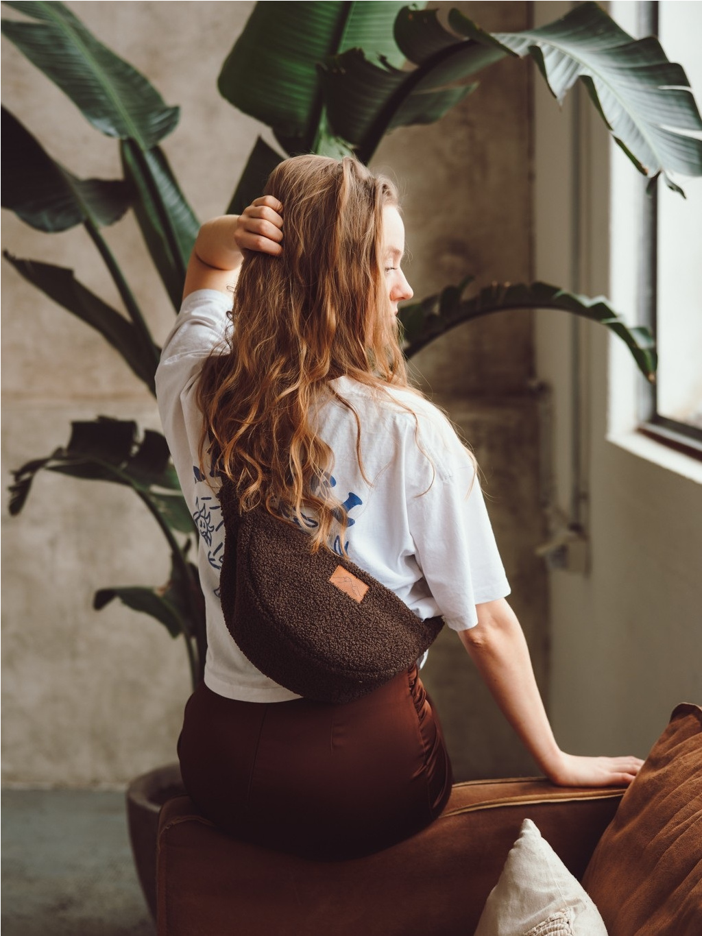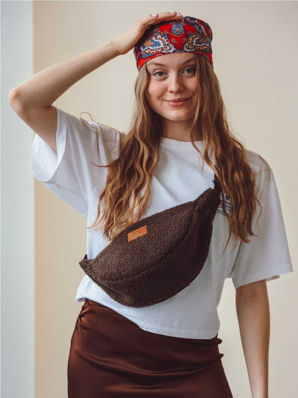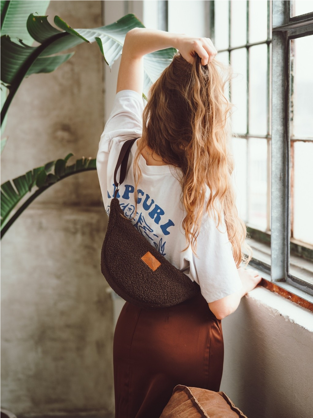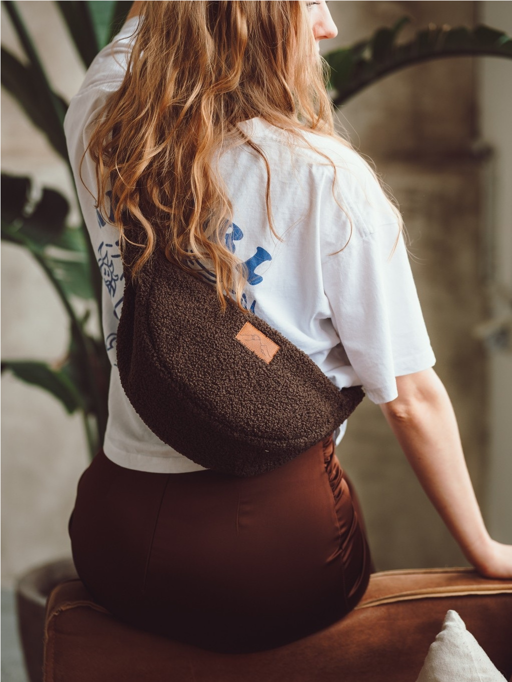 Lehká, měkká a překvapivě prostorná. Stylová půlměsícová kabelka z moderního teddy materiálu, kterou můžete nosit crossbody i přes rameno.
